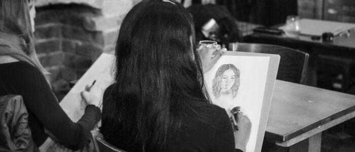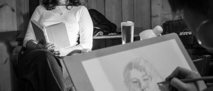 Fortnightly portrait life drawing sessions, currently held at the Chesterfield Lounge – all materials provided with a seated, clothed model and relaxed atmosphere.